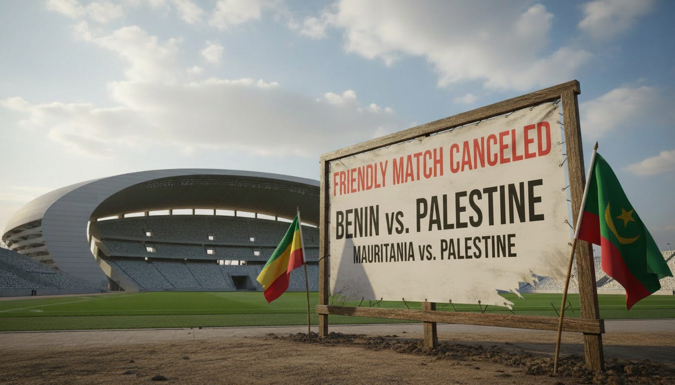 “Palestine Apologizes for Missing Friendlies Against Mauritania and Benin in Morocco Jerusalem - Palestinian Football Association Media Office: The Palestinian Football Association announces the inability of the first national team to participate in the friendly gathering hosted by the Kingdom of Morocco, during which the Steadfast were scheduled to play two friendly matches against the national teams of Mauritania and Benin, in the international break for the current month of March.