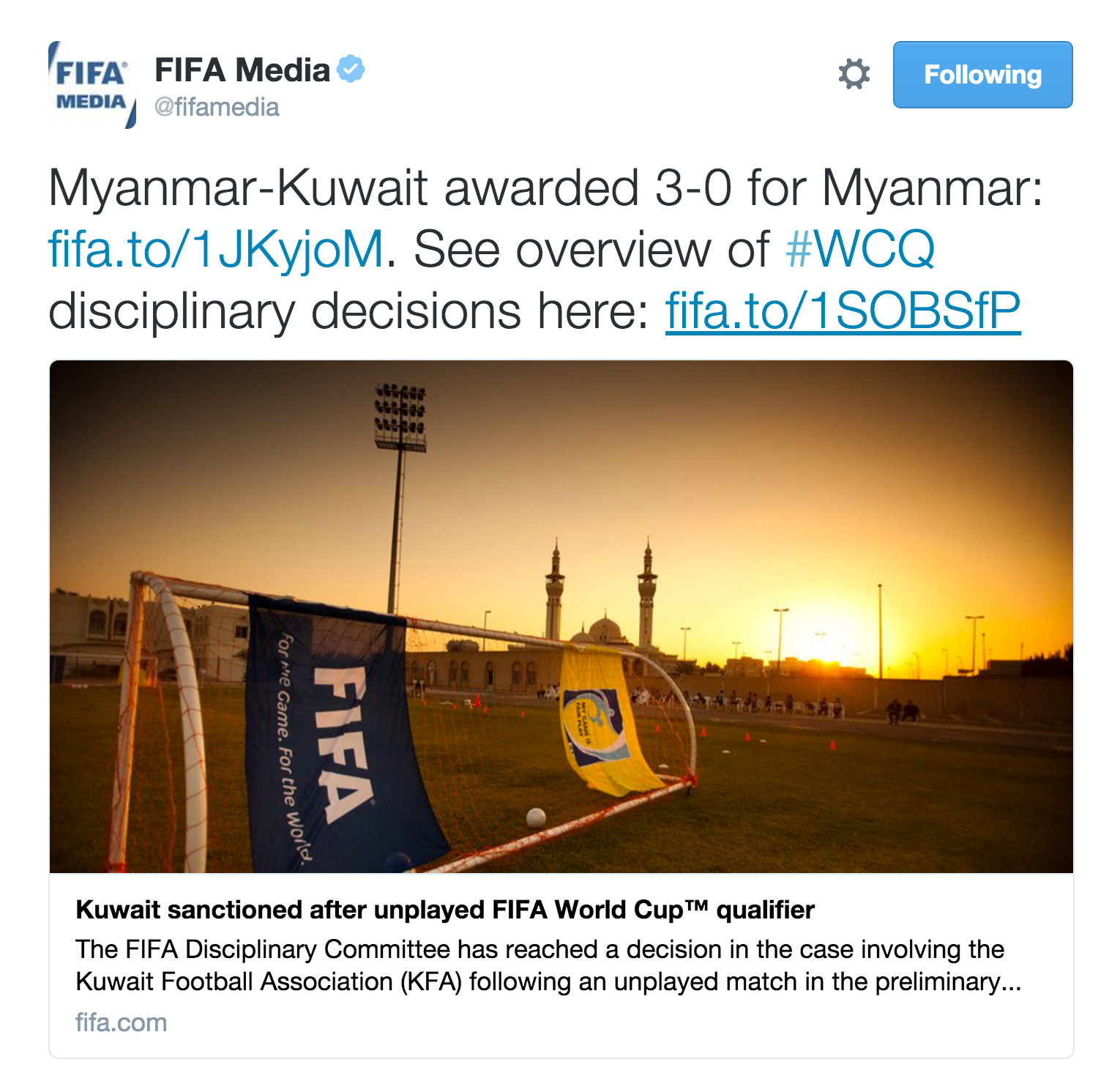 The big news in regards to Asian World Cup qualifying this month is that Kuwait has finally been punished for government interference in football. A 3-0 win awarded to Myanmar could potentially change the makeup of the final round.