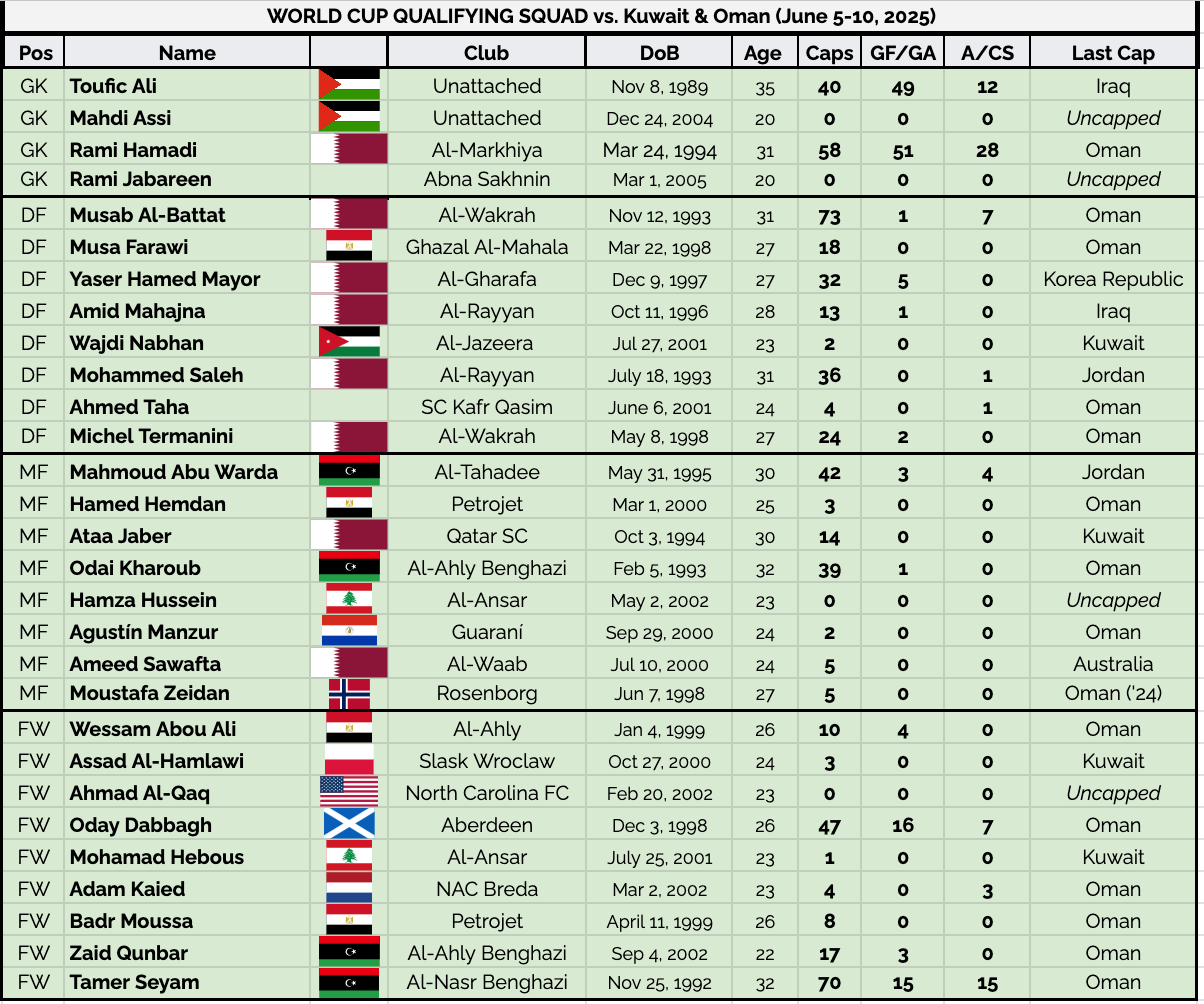 National Team StatsLatest Palestine SquadCaps, Goals, Assists, for every player called in to the latest Palestine SquadFootball PalestineMay 21, 20253ShareThis Substack is reader-supported. Upgrade to a paid subscription for more detailed statistics of every game and for every player in Palestine history? Subscribe