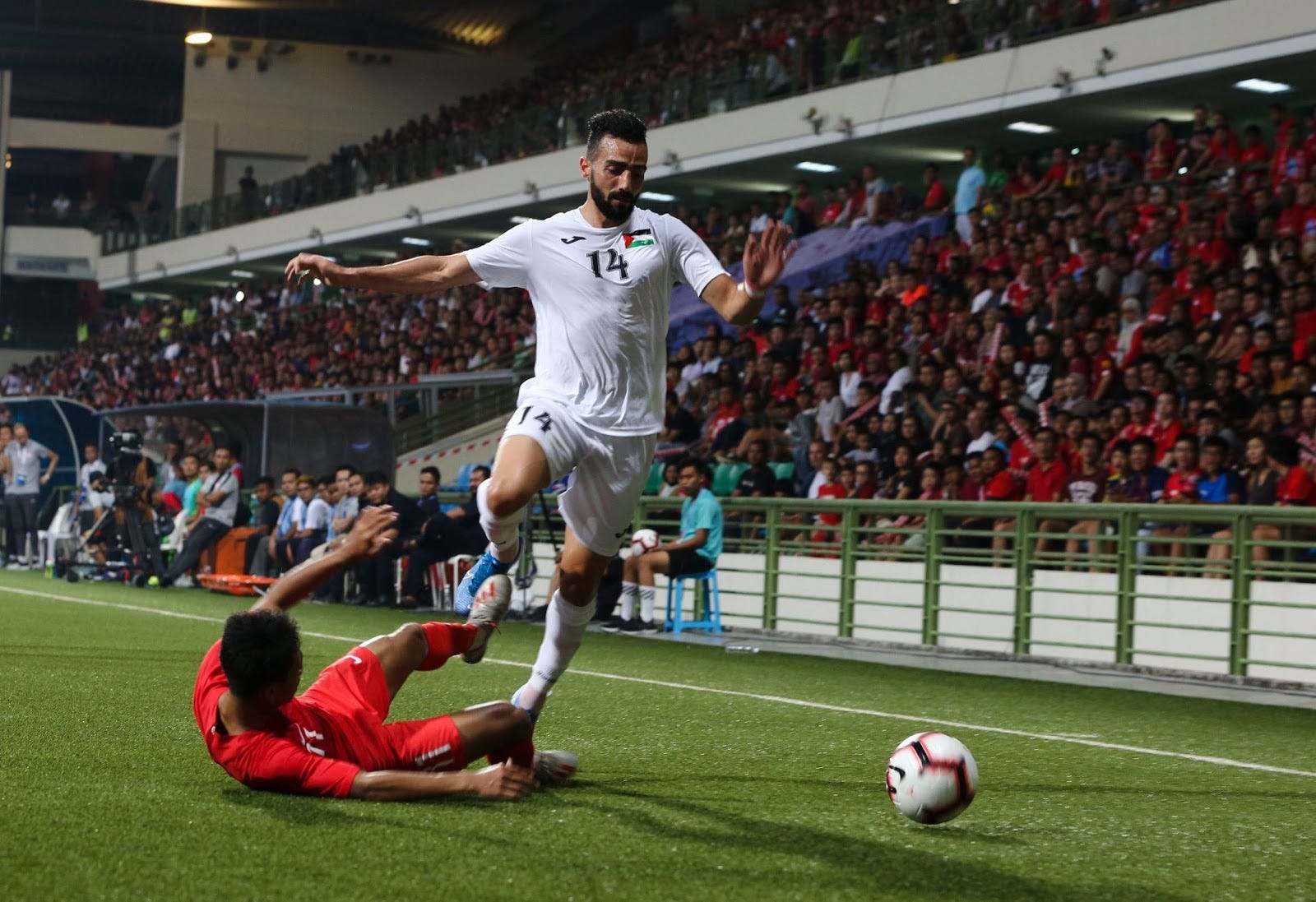 Palestine Starting XI: Rami Hamadi, Musab Al-Battat, Yaser Hamed Mayor, Abdelatif Bahdari, Abdallah Jaber; Mohammed Darweesh, Mohammed Rashid (Mohammed Yameen); Oday Dabbagh, Nazmi Albadawi (Mahmoud Eid), Tamer Seyam; Mahmoud Wadi (Islam Batran)